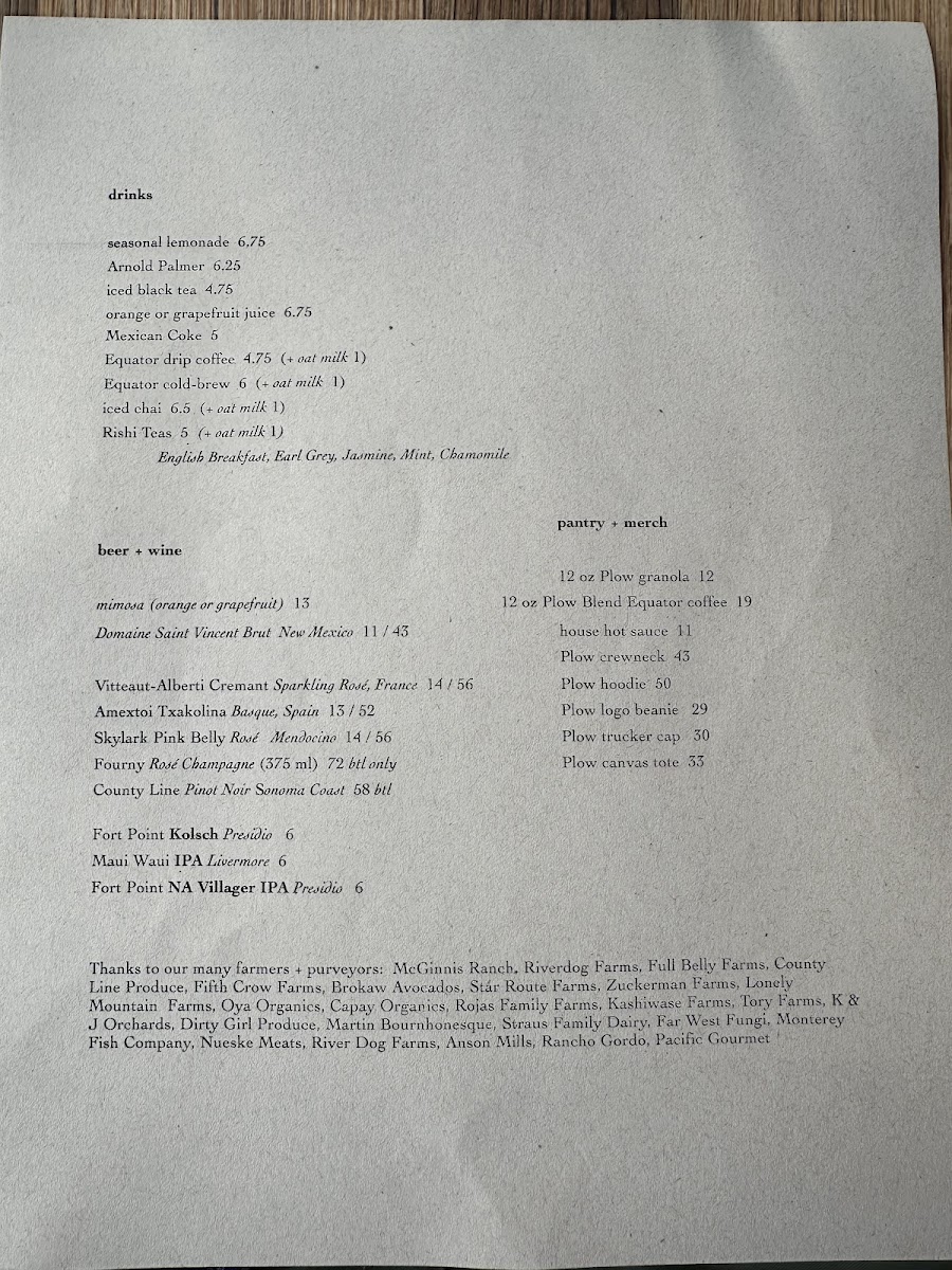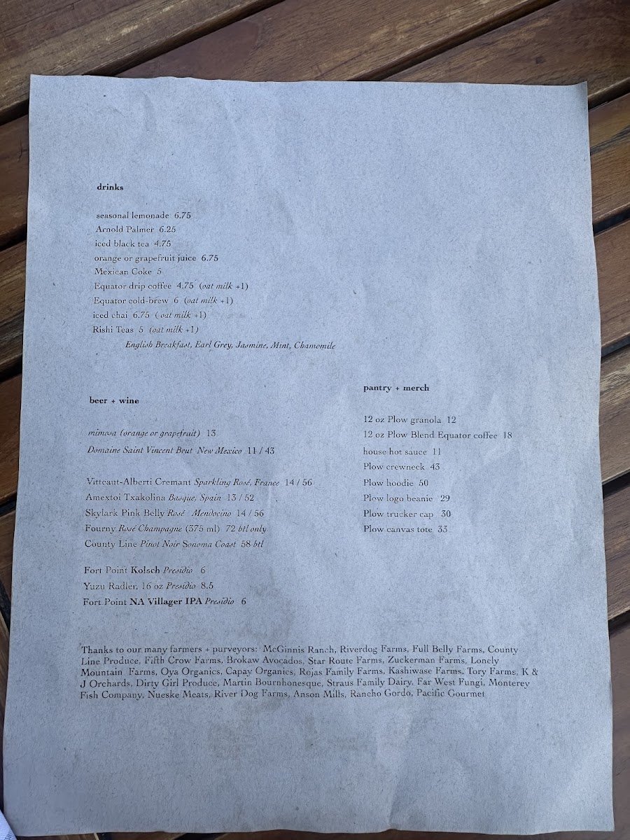 Plow - CA 94107 Menu